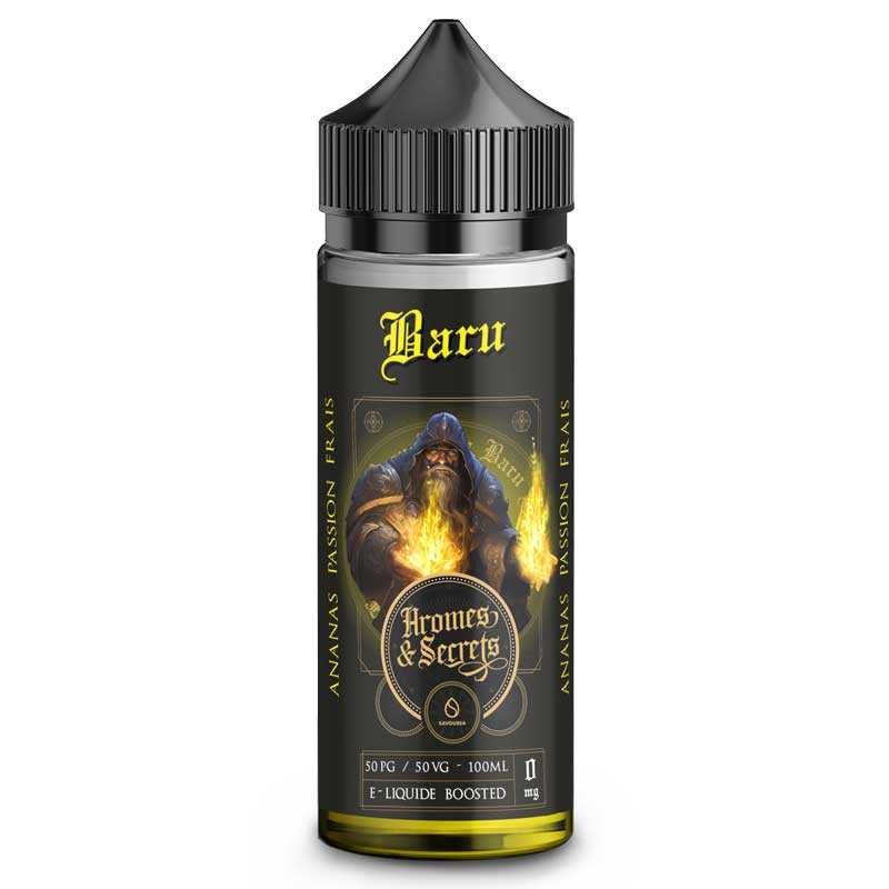 Découvrez le e liquide Baru Aromes et Secrets 100 ml. Saveur(s) : Frais, Ananas, Fruit de la passion. Le e liquide Aromes et Secrets est formulé dans un flacon de 100 ml sans nicotine et peut contenir jusqu'à 120 ml de e liquide après l'ajout de deux boosters.