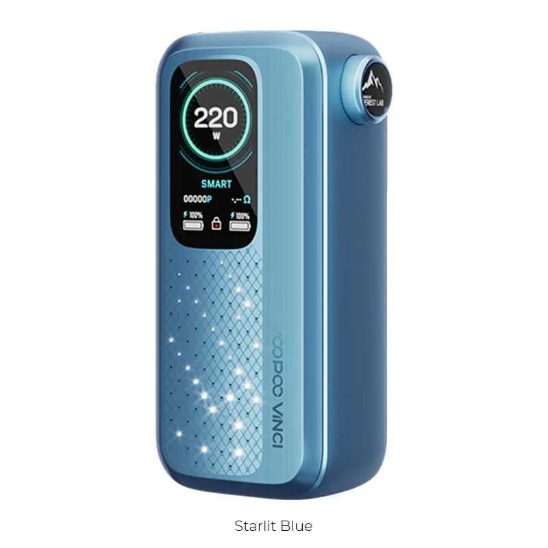 Avec la Vinci Spark 220, VOOPOO démontre une fois de plus son savoir-faire. Puissante, polyvalente, sécurisée et design, cette box coche toutes les cases pour séduire les vapoteurs aguerris. Une fois les deux accus en place, il ne reste qu’à profiter d’une expérience de vape intense et sur mesure, en toute confiance.