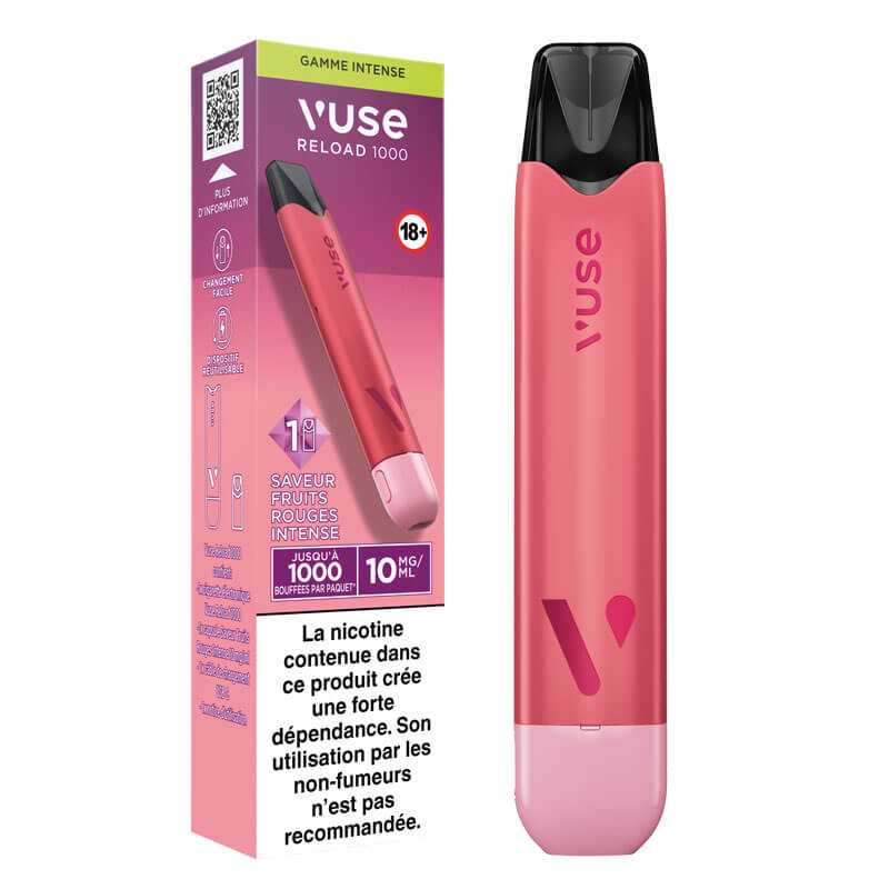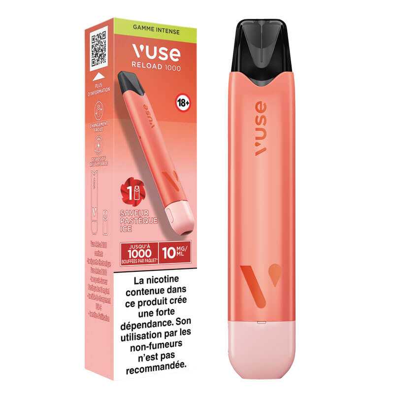 Vuse présente la Reload 1000 Bar, une puff rechargeable, offrant jusqu'à 1000 bouffées. Compacte et simple à utiliser, elle convient à tous les pods VUSE et se recharge facilement grâce à son câble USB-C inclus. Plusieurs saveurs sont disponibles.
