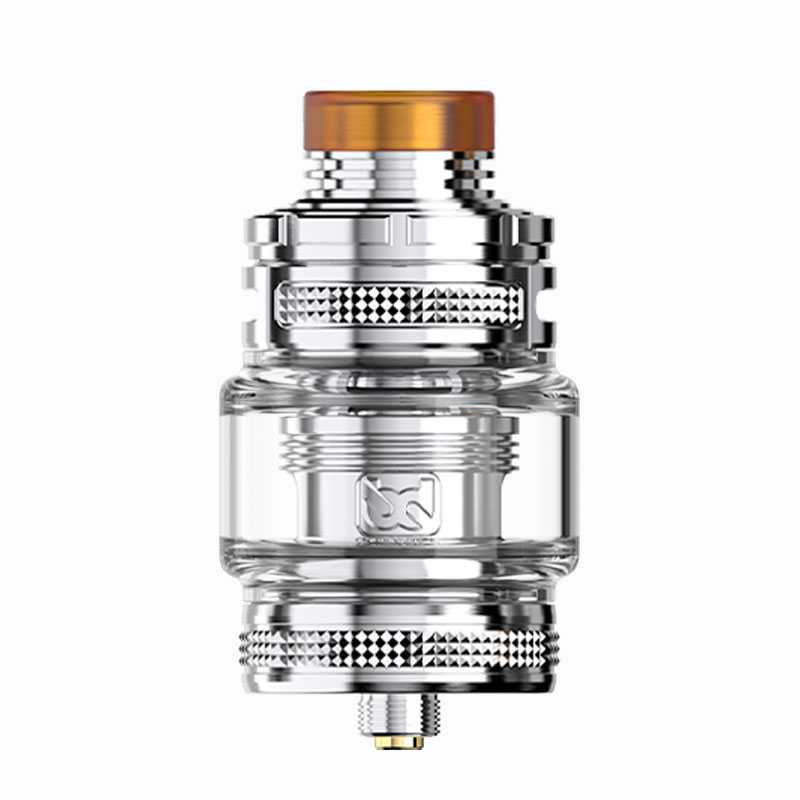 Le Precisio Sub-Ohm de BD Vape, inclus dans le kit Rayden 100, est conçu pour la vape directe (DL). Ce clearomiseur propose une capacité de 4 ml avec son pyrex bulb, ou 2 ml avec un pyrex droit. Il intègre un système de remplissage par le haut et un airflow réglable pour ajuster le tirage. Livré avec des résistances BDC en mesh (0.15 et 0.30 ohm), il est compatible avec des liquides à haut taux de VG et permet une importante production de vapeur.