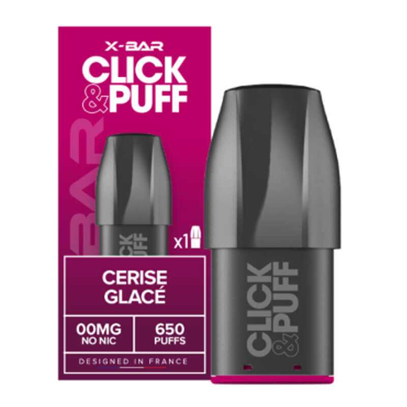 1 cartouche Cerise Glacée pour la puff rechargeable Click & Puff 650R X-Bar du French Lab. Saveur(s) : Cerise Glacée. Disponible en 0mg, 10mg et 20mg de nicotine - 650 bouffées par recharge.