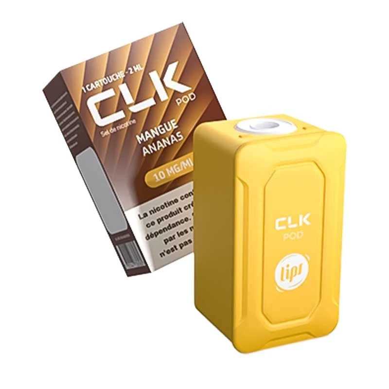 Cartouche pod Ananas Mangue pour la puff rechargeable CLK One de Lips. Saveur(s) : Ananas Mangue. Disponible en 10mg et 20mg de nicotine.