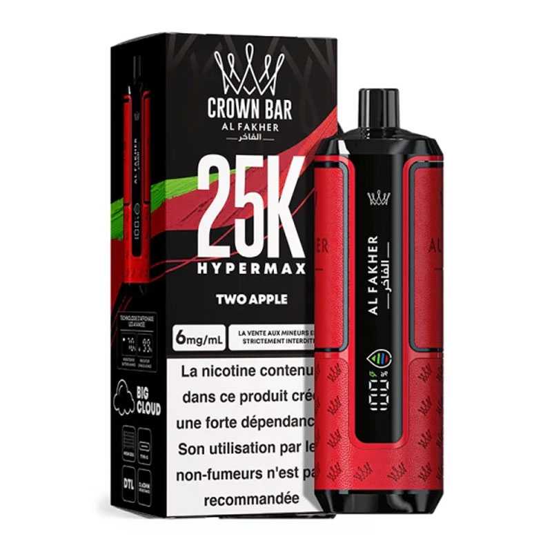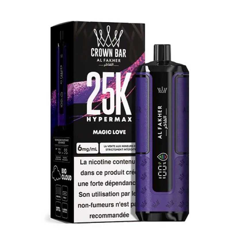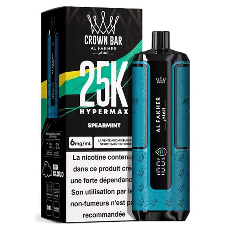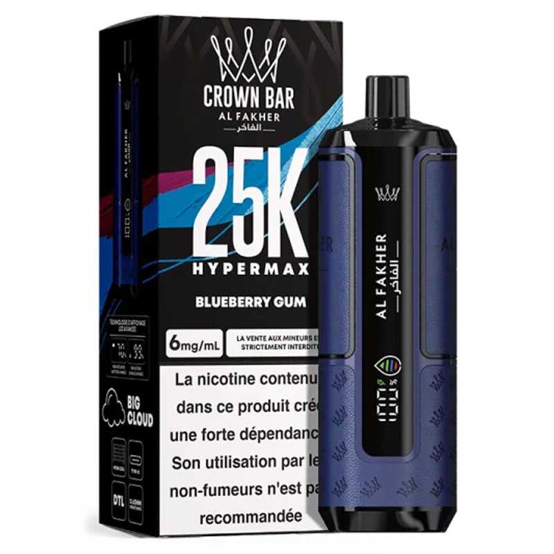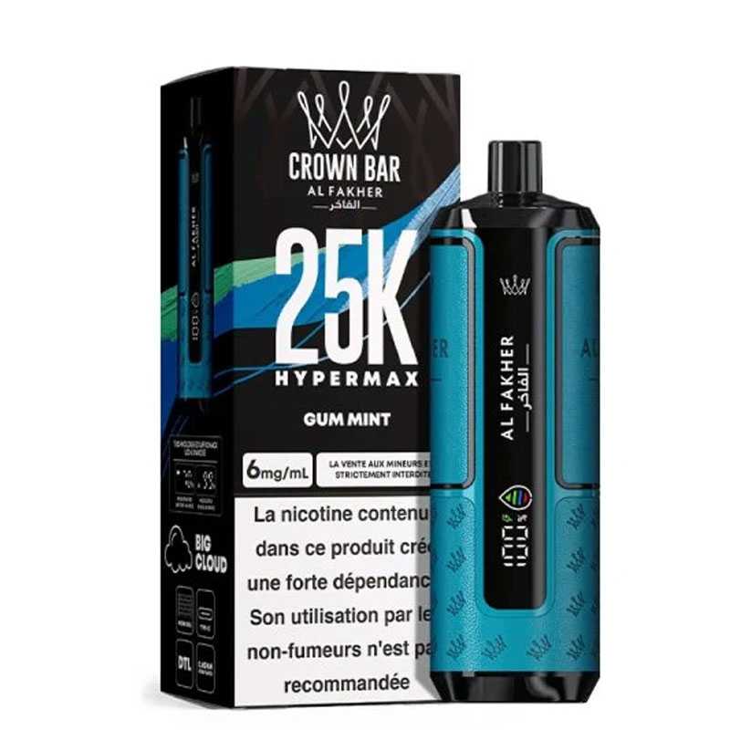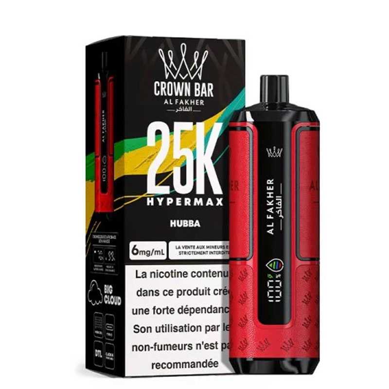 Avec la Crown Bar Hyper Max 25K, Al Fakher repousse les limites des puffs rechargeables. Design moderne, autonomie hors norme et restitution des saveurs digne des meilleurs dispositifs : cette puff premium séduit autant les amateurs de gros volumes que les vapoteurs en quête de simplicité.