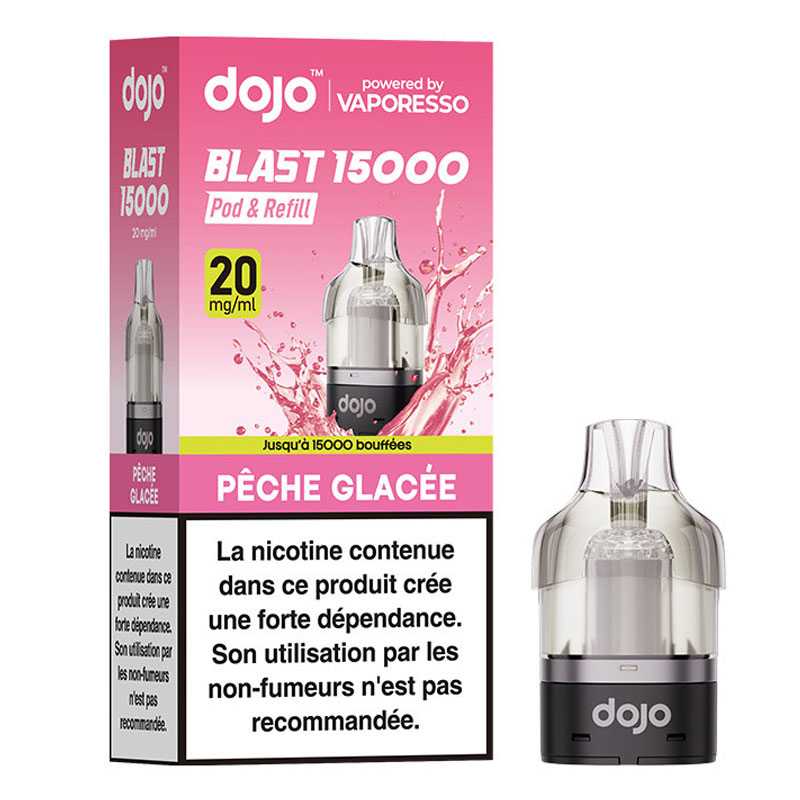 Cartouche Pêche Glacée Dojo Blast 15K pour la puff rechargeable Dojo Blast 30K de Vaporesso. Saveur : Pêche Glacée.