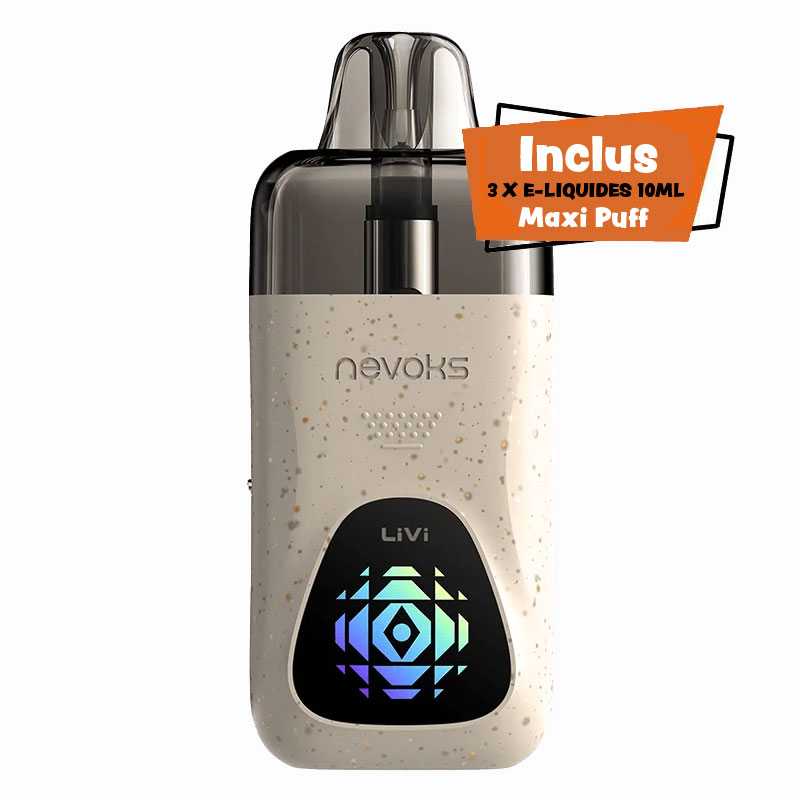 Le Nevoks Livi Pod Kit, fabriqué par Nevoks, est conçu pour les vapoteurs recherchant simplicité, confort et polyvalence. Les 3 e-liquides Maxi Puff inclus apportent une expérience gustative unique grâce à un large choix de saveurs gourmandes et fruitées. Ensemble, ce partenariat permet de combiner technologie de pointe et e-liquides de haute qualité, pour un total d’environ 50 000 bouffées.