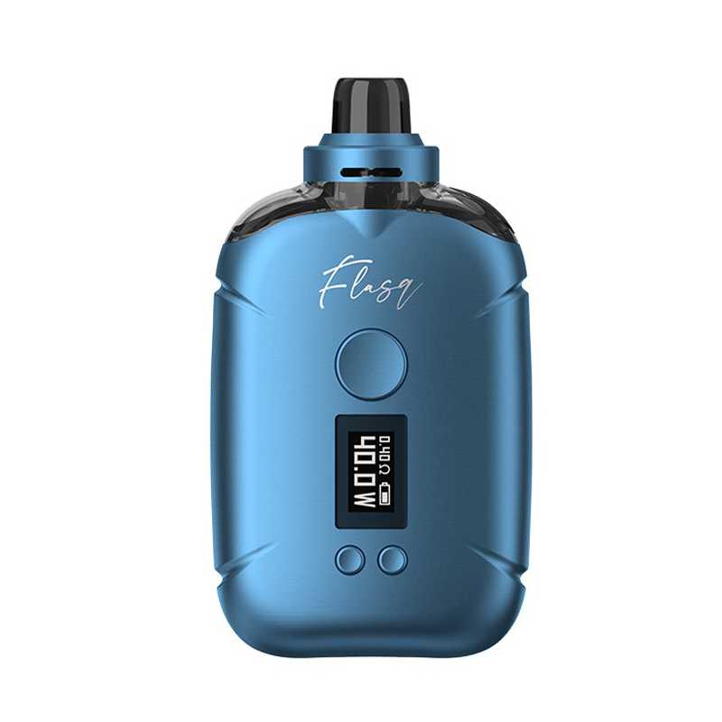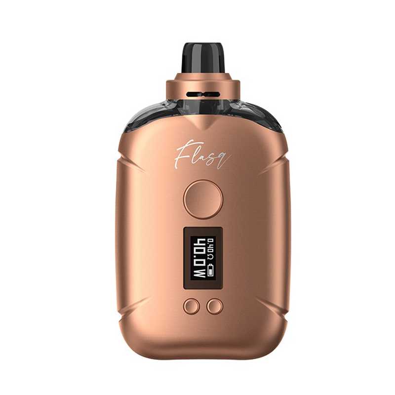 Le kit FlasQ est un petit pod bien pensé. Il reprend la forme d'une flasque pour se glissé facilement dans le creux de la main. Son format compact permet ainsi de simplifier le transport. Les vapoteurs en déplacement pourront le dégainer à tout moment et profiter de longues heures de vapotage de haut vol.
