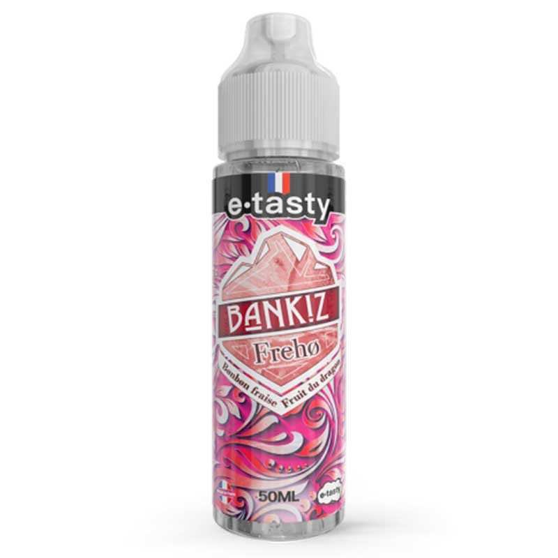 Découvrez le e liquide Freho Bankiz 50 ml. Saveur(s) : Bonbon - Fraise - Fruit du dragon - Frais. Le e liquide Bankiz est formulé dans un flacon de 50 ml sans nicotine et peut contenir jusqu'à 70 ml de e liquide après l'ajout de deux boosters.