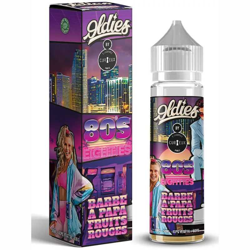 Découvrez le e liquide Eighties - 80's Oldies Curieux 50 ml. Saveur(s) : Fruits rouges, Barbe à papa. Le e liquide Curieux est formulé dans un flacon de 50 ml sans nicotine et peut contenir jusqu'à 70 ml de e liquide après l'ajout de deux boosters.