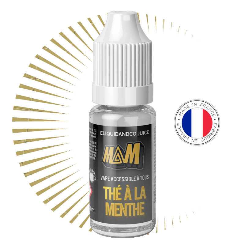 Le e-liquide Thé à la menthe de la gamme MAM est composé de Menthe, Thé.