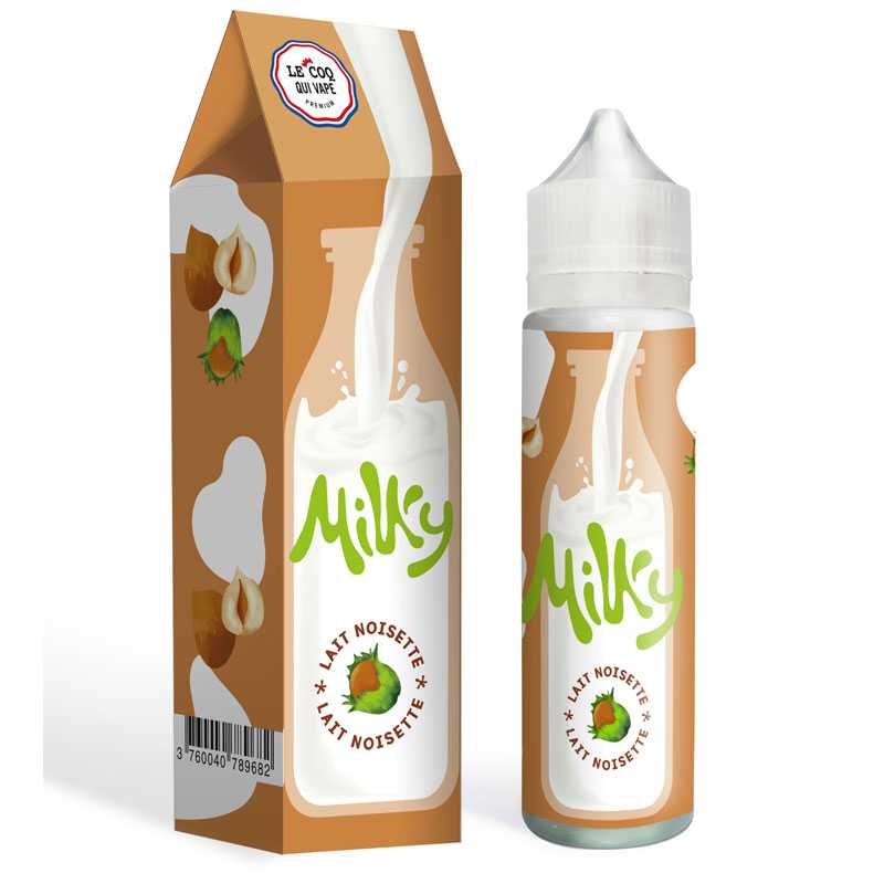 Découvrez le e liquide Lait Noisette Milky 50 ml. Saveur(s) : Noisette, Lait. Le e liquide Milky est conditionné dans un flacon de 50 ml sans nicotine et peut contenir jusqu'à 70 ml de e liquide après l'ajout de deux boosters.