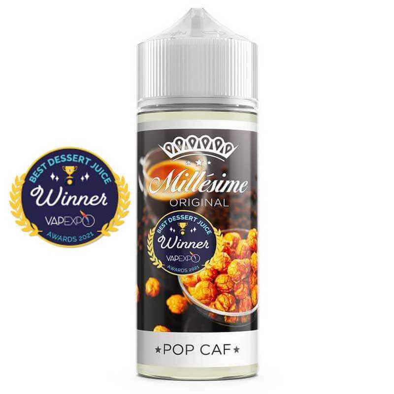 Découvrez le e liquide Pop Caf Millésime 100 ml. Saveur(s) : Caramel, Café, Pop Corn. Le e liquide Millésime est conditionné dans un flacon de 100 ml sans nicotine et peut contenir jusqu'à 120 ml de e liquide après l'ajout de deux boosters.