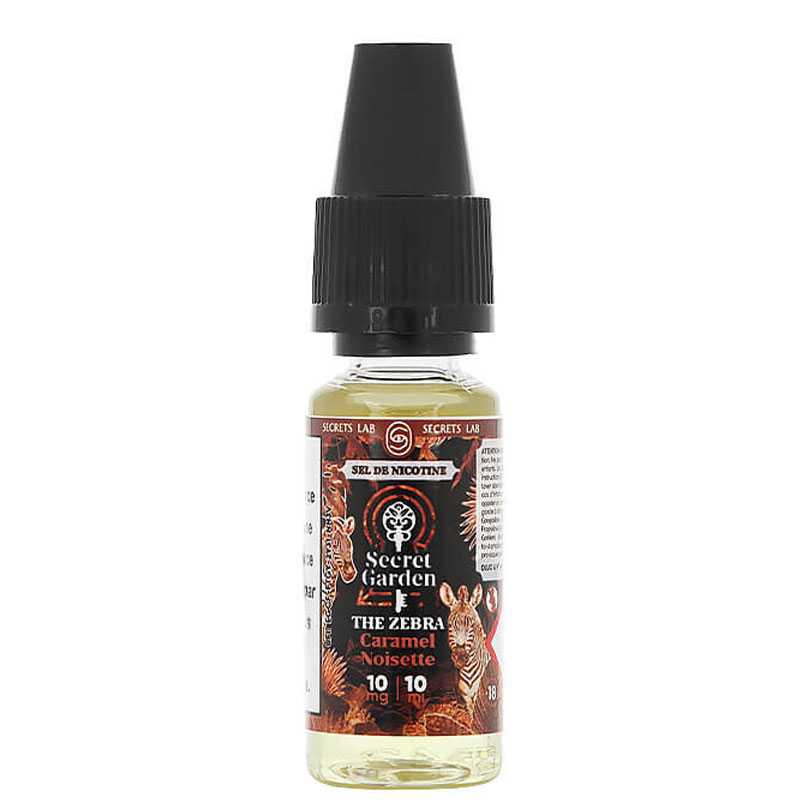 Le e-liquide The Zebra Salt de Secret Garden est composé de caramel et de noisettes.