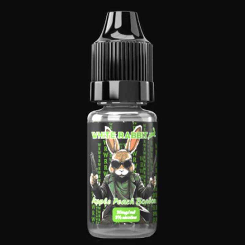 E-liquide Apple Peach Bonbon 20mg Sel de Nicotine, fabriqué par White Rabbit, en flacon de 10ml. Composé d'un ratio PG/VG de 50/50. Saveur bonbon, pomme, pêche.