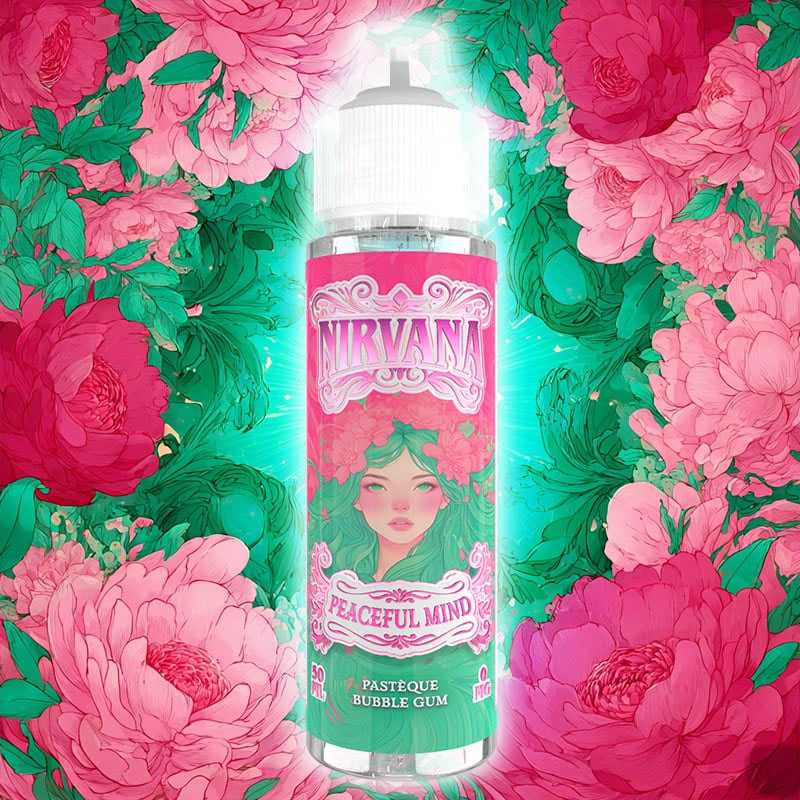 Découvrez le e liquide Peaceful Mind Nirvana 50 ml. Saveur(s) : Bubble Gum - Pastèque. Le e liquide Nirvana est formulé dans un flacon de 50 ml sans nicotine, prévu pour recevoir jusqu'à 75ml de liquide.