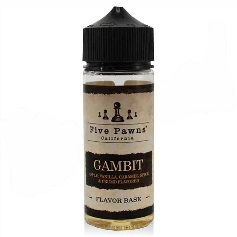 Découvrez le e liquide Gambit Five Pawns 100 ml. Saveur(s) : Pomme, Glace, Vanille, Caramel. Le e liquide Five Pawns est formulé dans un flacon de 100 ml sans nicotine et peut contenir jusqu'à 120 ml de e liquide après l'ajout de deux boosters.