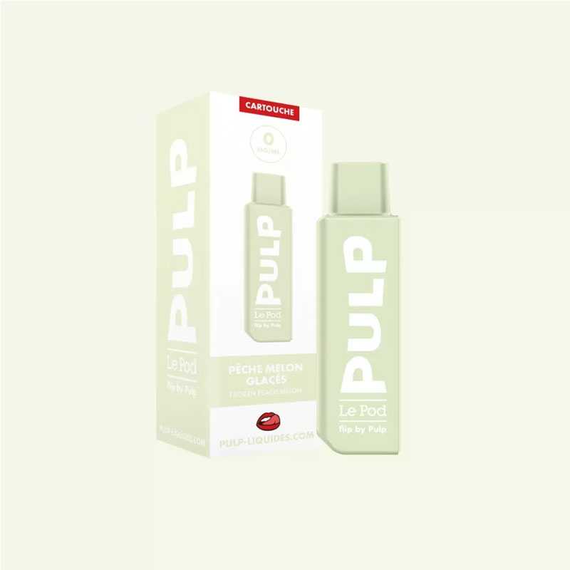 1 cartouche Pêche Melon Glacés pour la puff rechargeable Le Pod Flip de Pulp. Saveur(s) : Melon, Frais, Pêche. Disponible en 0mg, 10mg et 20mg de nicotine - 300 bouffées par recharge.