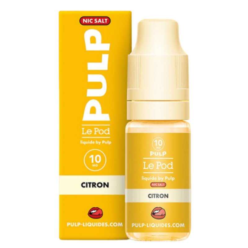 Le e-liquide Citron Le Pod Liquide Nic Salt est fabriqué en France par la marque Pulp.