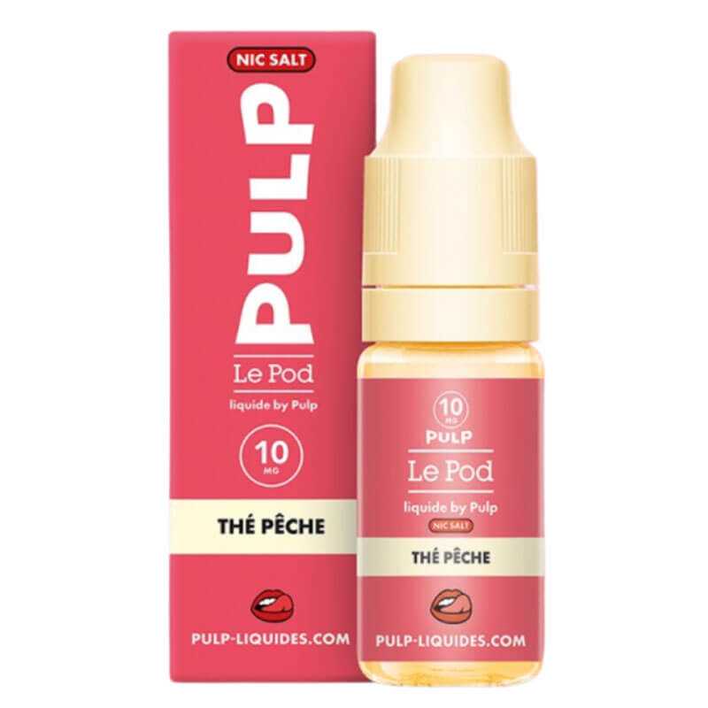 Le e-liquide Thé pêche Le Pod Liquide Nic Salt est fabriqué en France par la marque Pulp.