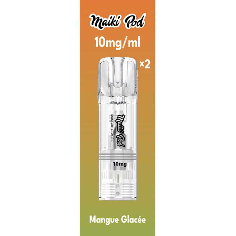 2 cartouches Mangue Glacée pour la puff rechargeable Maiki Pod de Maiki Puff. Saveur(s) : Mangue, Frais. Disponible en 10mg de nicotine - 600 bouffées par recharge.