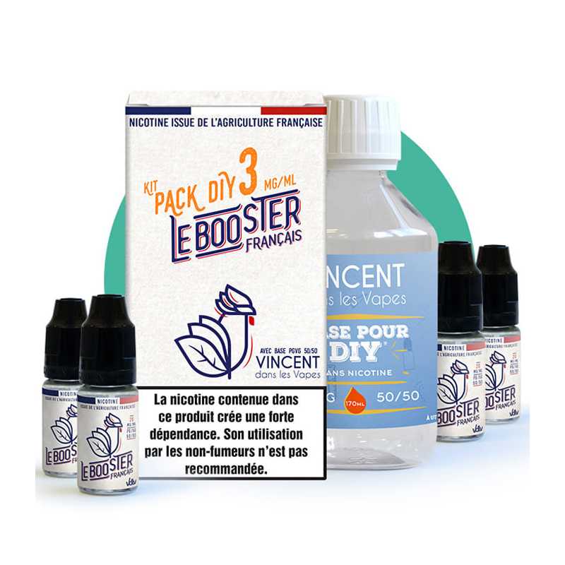 Gagnez du temps avec le pack Diy Le Booster Français proposé par Vincent Dans Les Vapes ! Cette méthode simplissime vous permet de réaliser 210 ml de base nicotinée pour vos e-liquides DIY en un tour de main.