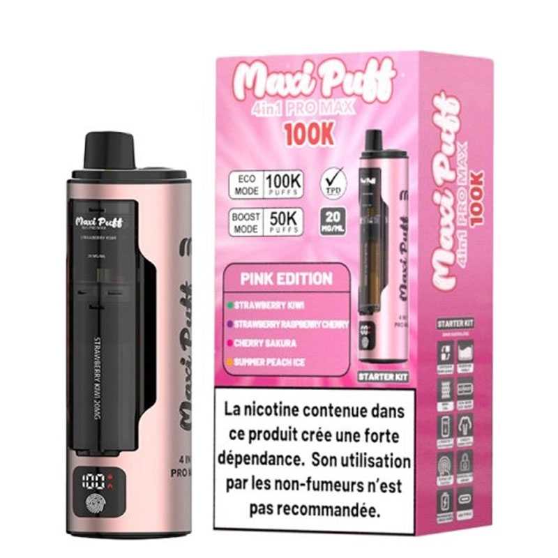 La Pink Edition propose quatre pods préremplis aux arômes fruités et frais. Grâce au système 4-en-1 de la Maxi Puff 100K Pro Max, vous pouvez changer de pod en un instant pour découvrir une nouvelle saveur. Ce concept innovant est appliqué à toute la gamme Maxi Puff 4in1 Pro Max, permettant de savourer plusieurs goûts avec un seul et même appareil.