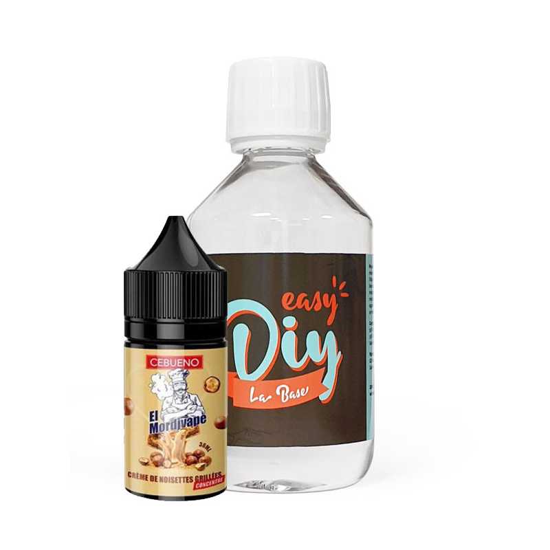 Pack DIY El Mordjvape : un pack tout-en-un qui réunit tout le nécessaire afin de préparer votre El Mordjvape en grande quantité et avec le taux de nicotine qui vous convient. Saveurs : Noisette, Crème. Ce pack DIY Mix Me contient :