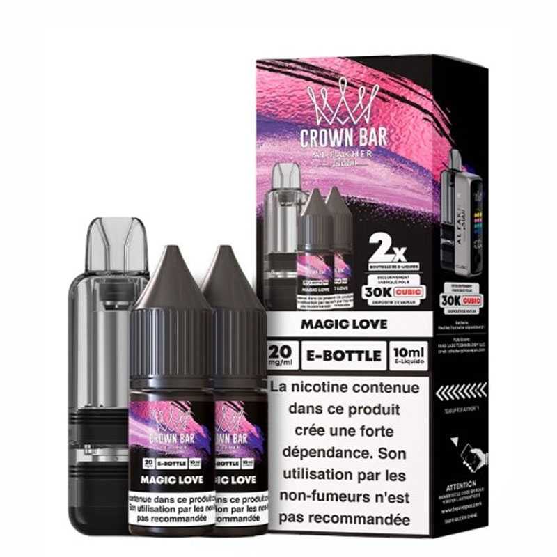 Cette version correspond à la déclinaison aromatique Magic Love. Le e-liquide fourni contient des arômes identifiés pour cette variante, formulés sans additifs alimentaires ni composés à visée nutritionnelle.