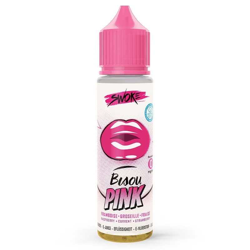 Découvrez le e liquide Bisou Pink Swoke 50 ml. Saveur(s) : framboise, groseille et fraise. Le e liquide Swoke est formulé dans un flacon de 50 ml sans nicotine et peut contenir jusqu'à 75 ml de e liquide après l'ajout de deux boosters.