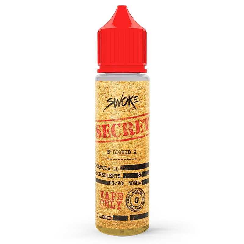 Découvrez le e liquide Secret Swoke 50 ml. Saveur(s) : Noix de macadamia - Beurre de cacahuètes. Le e liquide Swoke est formulé dans un flacon de 50 ml sans nicotine et peut contenir jusqu'à 75 ml de e liquide après l'ajout de deux boosters.