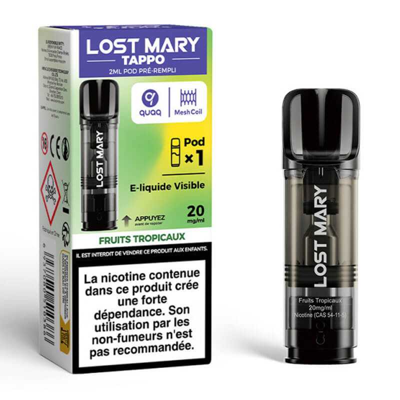 1 cartouche Fruits Tropicaux pour la puff rechargeable Tappo Air de Lost Mary. Saveur(s) : Fruits tropicaux. Chaque recharge offre une contenance de 2 ml, avec ou sans nicotine, permettant jusqu’à 600 bouffées.