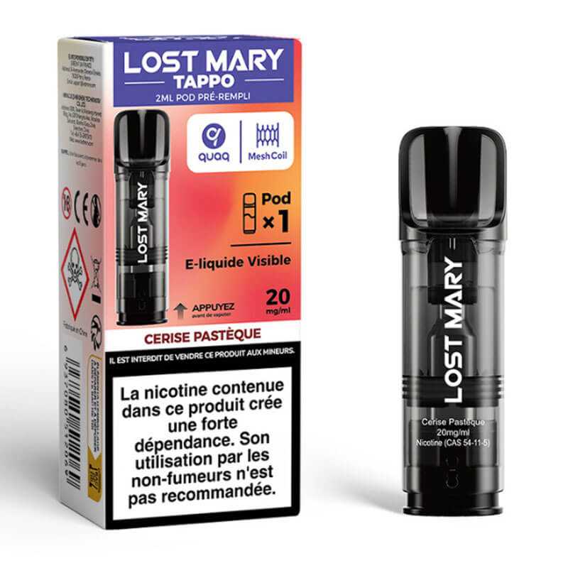 1 cartouche Cerise Pastèque pour la puff rechargeable Tappo Air de Lost Mary. Saveur(s) : Cerise, Pastèque. Chaque recharge offre une contenance de 2 ml, avec ou sans nicotine, permettant jusqu’à 600 bouffées.