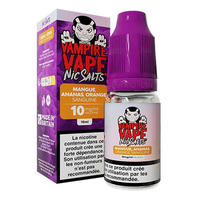 E liquide Mangue Ananas Orange sanguine sel de nicotine Format 10 ML Vampire Vape