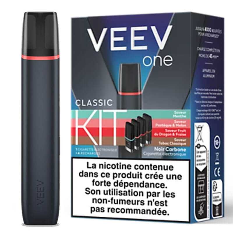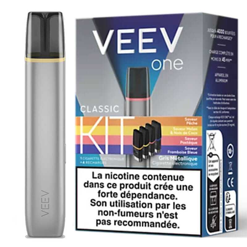 Découvrez le Kit Veev One + 4 recharges en 20mg de nicotine de VEEV, une cigarette électronique équipée d'une technologie de chauffe avancée et d'une longue durée d'utilisation pour une vape pratique et efficace.
