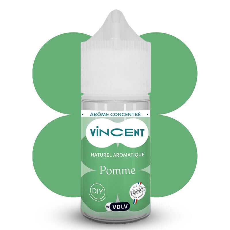 Arôme concentré Pomme 30ml - Gamme Vincent DIY, par VDLV. À diluer à 15% dans une base PG/VG 50/50, maturation de 3 à 7 jours. Origine : France. Saveur : Pomme.
