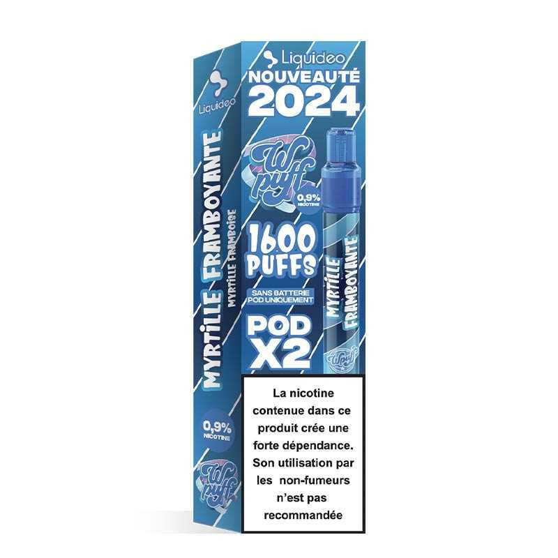 Pack de 2 cartouches Myrtille Framboyante pour la puff rechargeable Wpuff 2.0 Xperience de Liquideo. Saveur : Myrtille, Fraise. Contenance 2 x 2ml en 9mg ou 17mg de nicotine. Fabriquées en France. 800 bouffées par recharge.