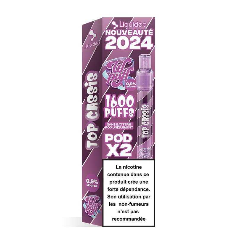 Pack de 2 cartouches Top Cassis pour la puff rechargeable Wpuff 2.0 Xperience de Liquideo. Saveur : Cassis. Contenance 2 x 2ml en 9mg ou 17mg de nicotine. Fabriquées en France. 800 bouffées par recharge.