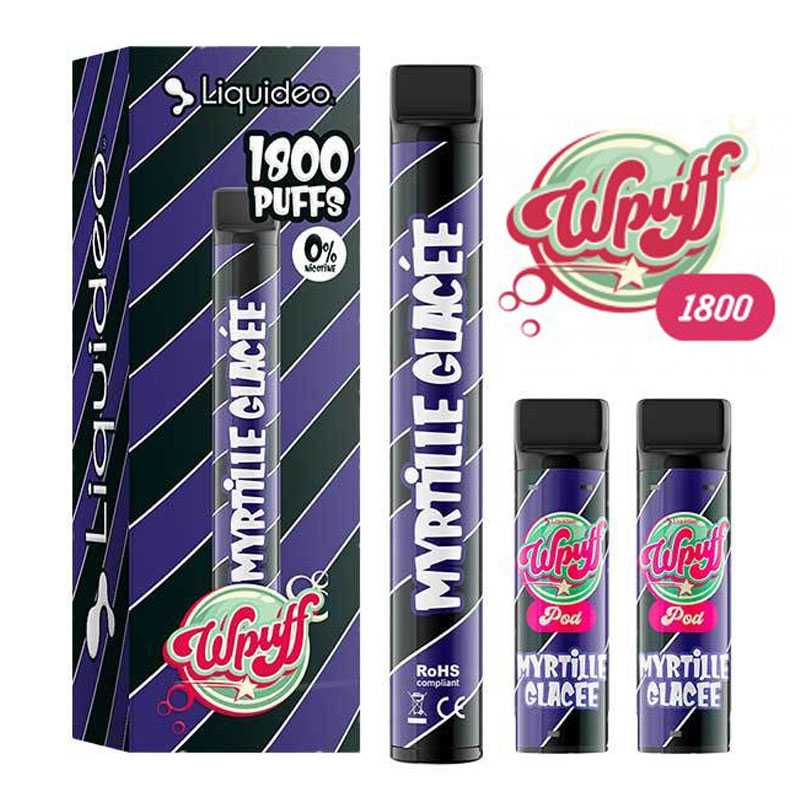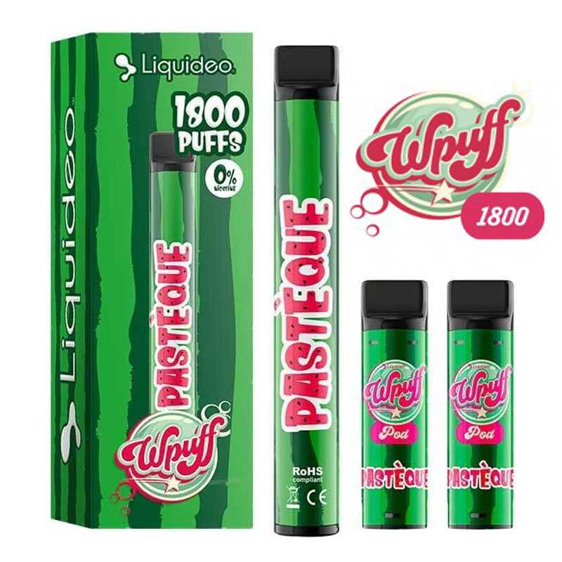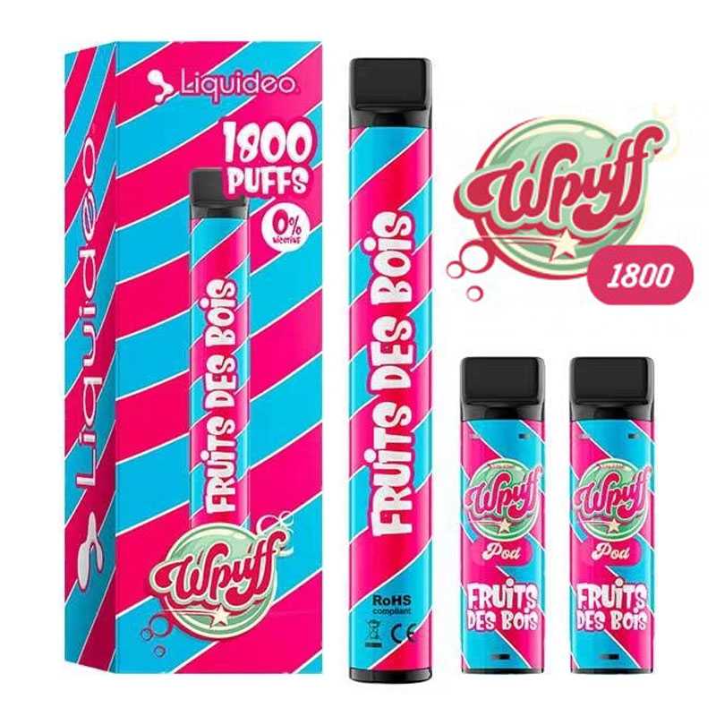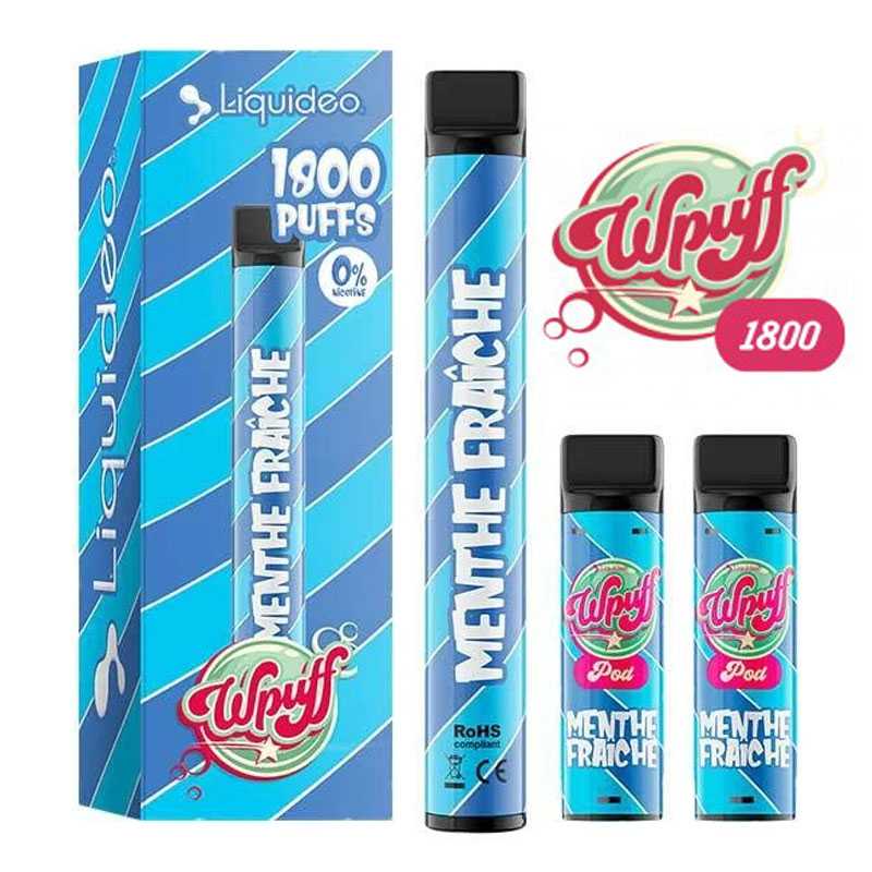 Puff réutilisable Liquideo Wpuff 1800 - Batterie 550mAh - 3 pods 2ml - 600 bouffées/pod - 12 saveurs - 0, 9, 17mg sel de nicotine.