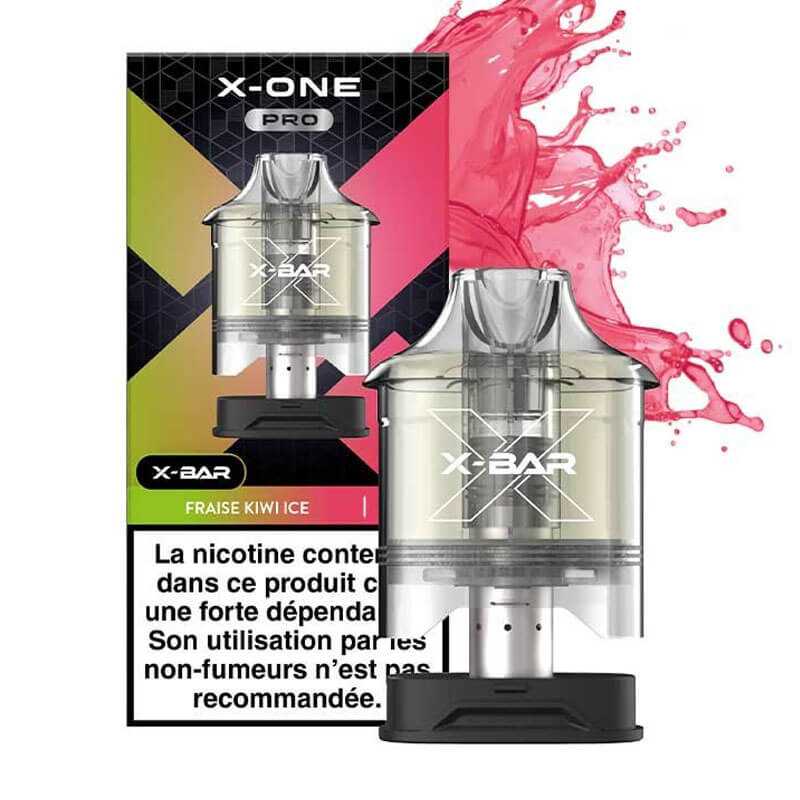 1 cartouche Fraise Kiwi Ice pour la puff rechargeable X One Pro X-Bar du French Lab. Saveur(s) : Fraise, Kiwi, Ice. Disponible en 10mg et 20mg de nicotine - 15 000 bouffées par recharge.