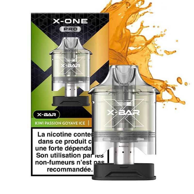 1 cartouche Kiwi Passion Goyave Ice pour la puff rechargeable X One Pro X-Bar du French Lab. Saveur(s) : Kiwi, Passion, Goyave, Frais. Disponible en 10mg et 20mg de nicotine - 15 000 bouffées par recharge.